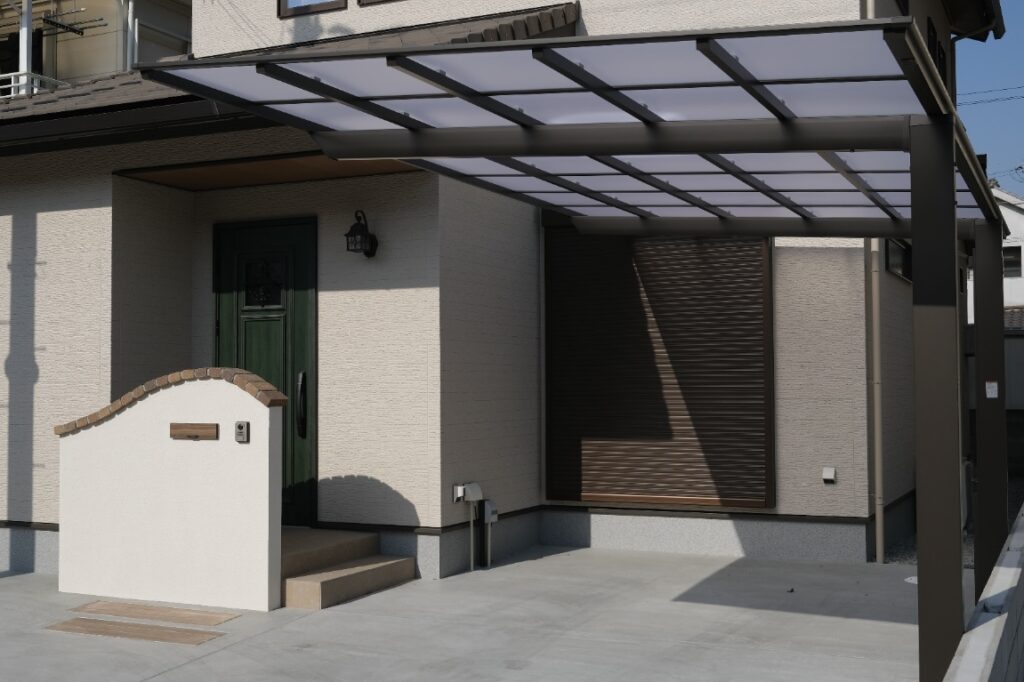 カーポートのフレームのカラーを、お家のサッシカラーと同じブラウンに合わせました。